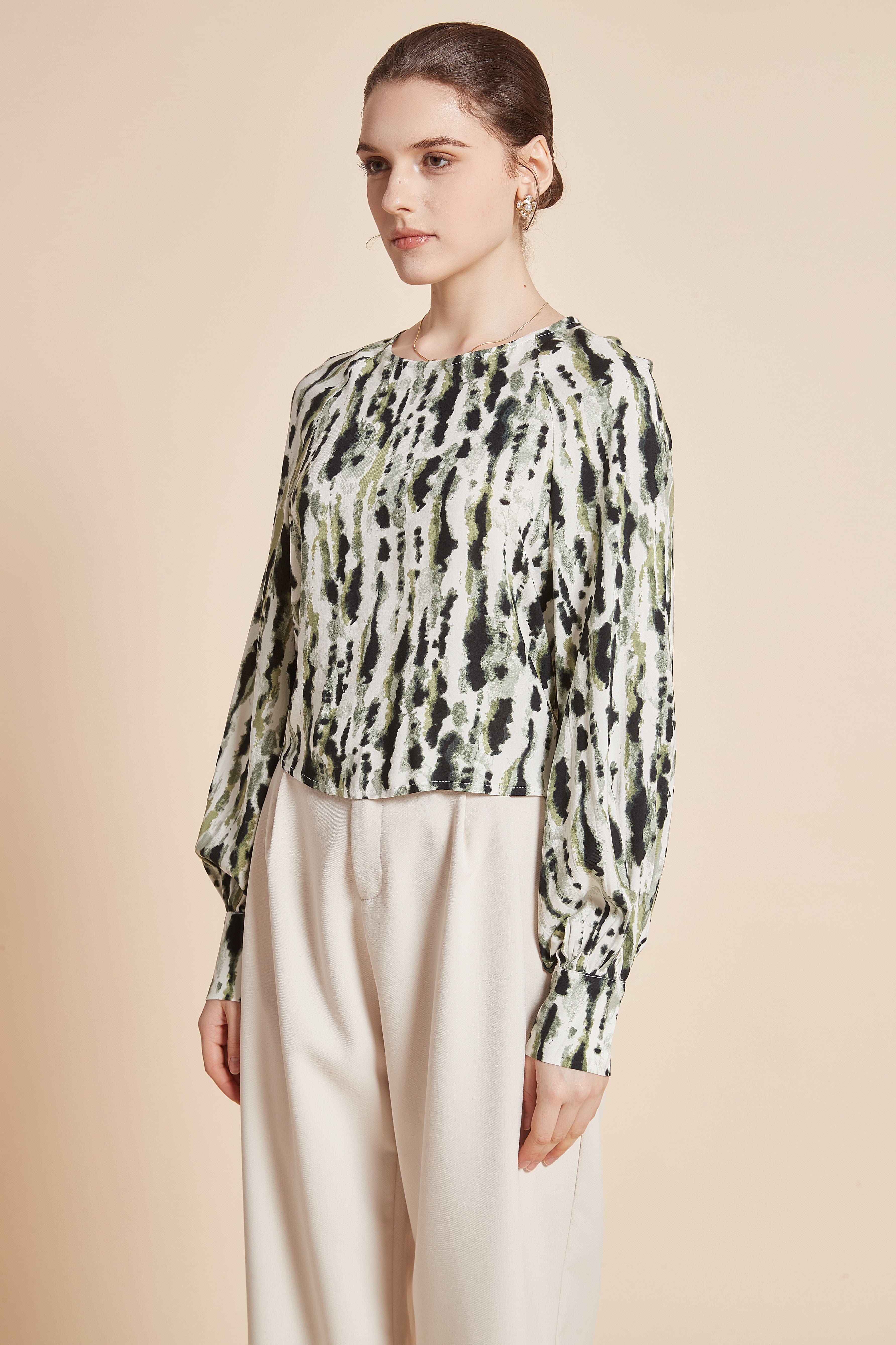Chic Printed Wide Sleeve Blouse with Long Sleeves