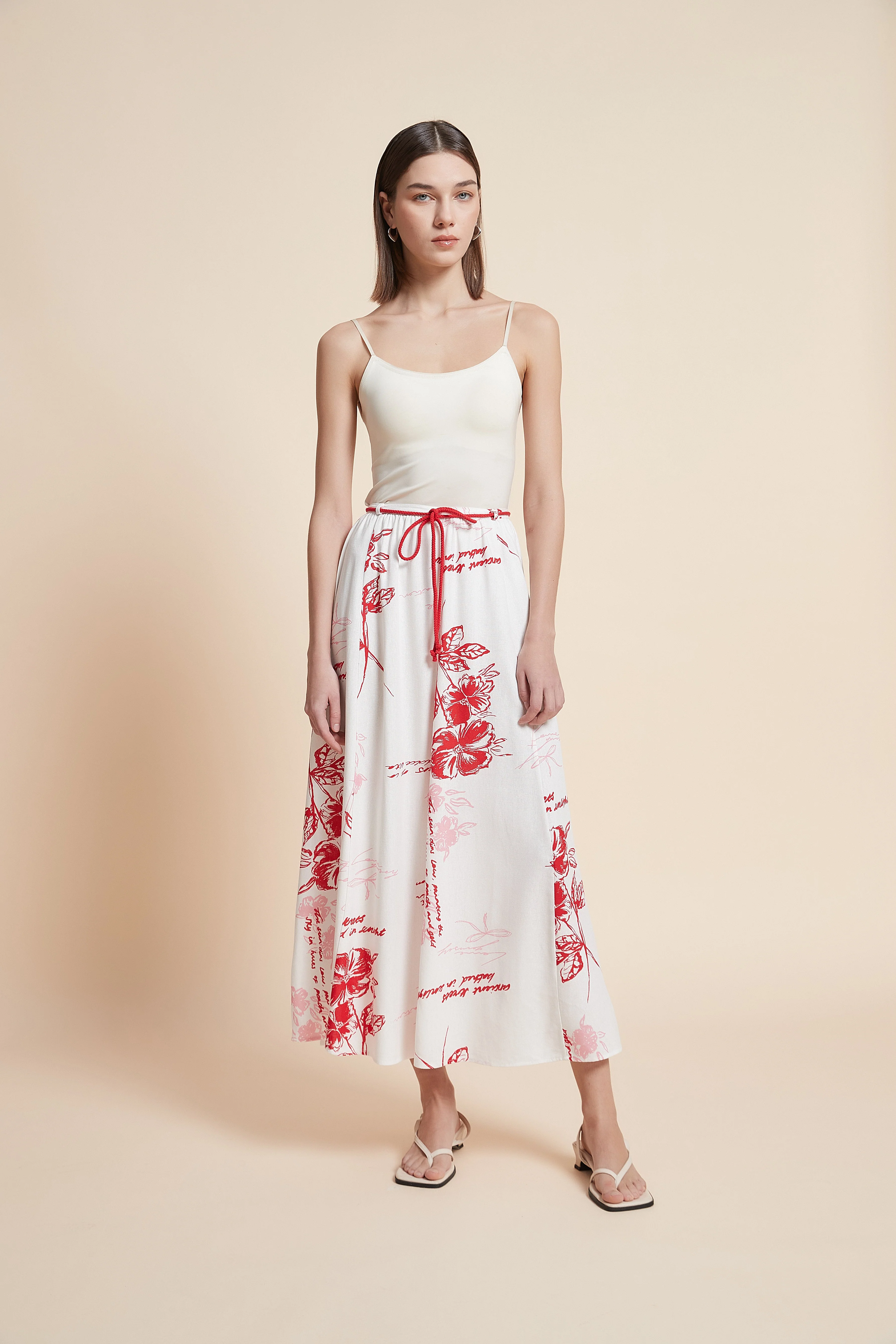 Refresh your look with this floral flared midi skirt, designed with a flowing cut that adds movement and feminine charm to daytime wear.