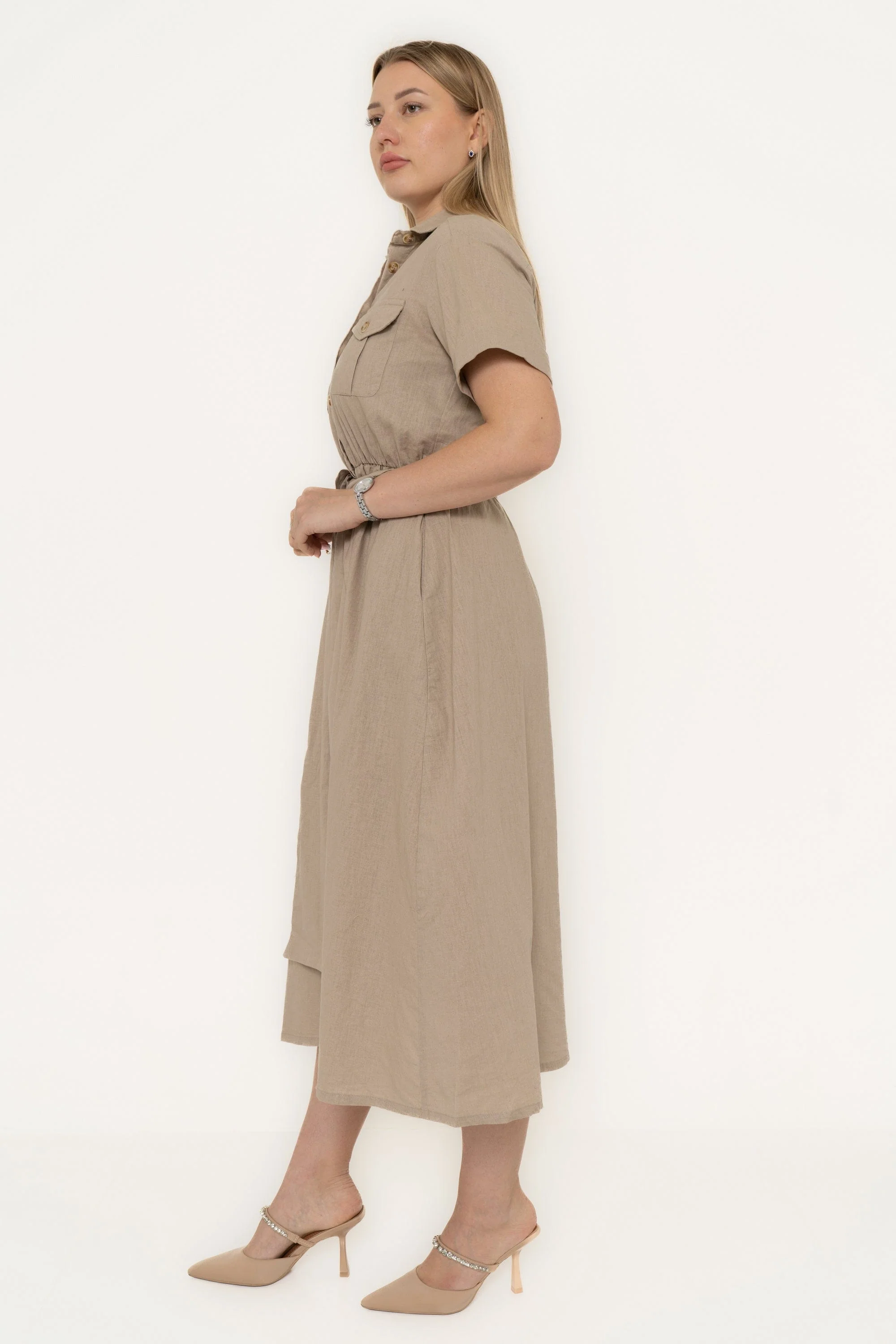 Discover the perfect blend of style and comfort with the Yola Midi Dress, designed for the modern woman who values both elegance and practicality. This chic dress features short sleeves and a classic collar, adding a touch of sophistication to your everyday look. The chest pockets offer functionality, while the waist tie accentuates your silhouette beautifully. Crafted from high-quality materials, this plain midi dress is versatile enough for casual outings or dressier occasions. Don't miss the chance to enhance your wardrobe with this timeless piece—order your Yola Midi Dress now through YOLA! Product Number: ysdr242137